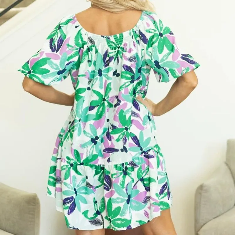 Factory Direct Wholesale Plus Size Women's Fashionable Cold Shoulder Floral Print Mini Dress - Stretchy Fabric & Custom Design